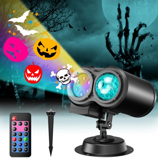 Ten rodzaj projektora przyjdzie do Ciebie z dużym pilotem, który zawiera wiele funkcji, takich jak zmiana prędkości, zmiana koloru, włączanie/wyłączanie fala oceaniczna. Warto kupić na Halloween lub Boże Narodzenie!