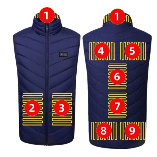 4. Na brzuch * 2, szyję * 1, ramię * 2, plecy * 2, talię * 2, ogrzewanie dziewięciostrefowe, ogrzewanie jednym przyciskiem, trzystopniowa regulacja temperatury, inteligentne ogrzewanie, dla osób, które boją się zimna zimą, pełne ogrzewanie z przodu iz tyłu, Zimą nie ma strachu przed zimnem.
