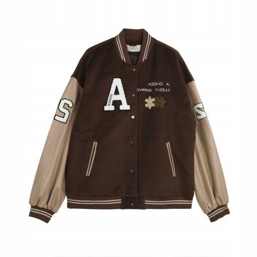 - Design - Modna kurtka hip-hopowa, z kieszeniami, naszywki "B", wygodne dopasowanie kolorów, patchworkowe rękawy ze skóry PU, długi rękaw w stylu retro, wygodne zapięcie na zatrzask. Vintage baseballowy mundur.