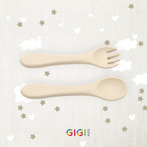 Silkonowe sztućce, łyżeczka i widelec dla dzieci do nauki samodzielnego jedzenia