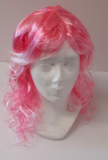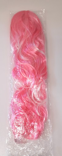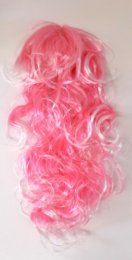 Peruka w stylu Barbie z różowo-białe kosmykami długimi na 55cm lekko kręcone od połowy.