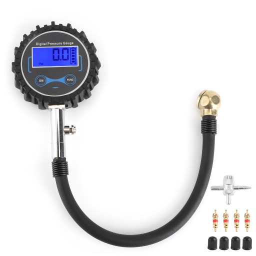 4. Podświetlany wyświetlacz, wystarczy nacisnąć przycisk zasilania, aby go włączyć, wybrać żądany zakres, a przycisk nadmiaru ciśnienia służy do precyzyjnej regulacji ciśnienia na zaworze opony.