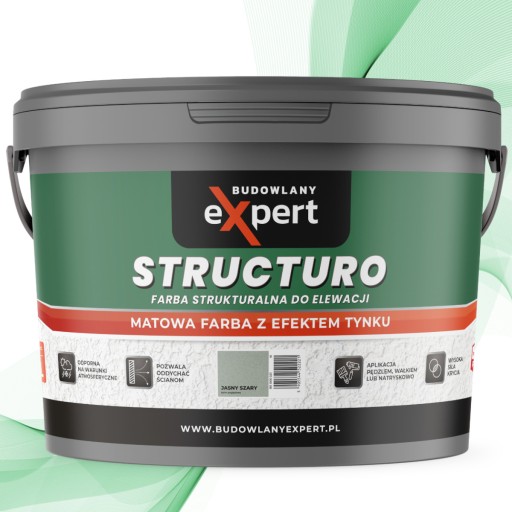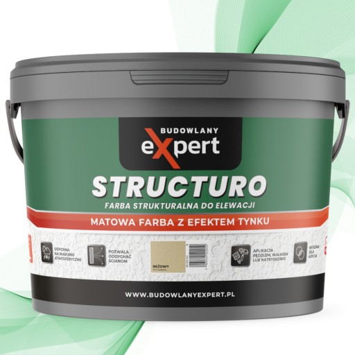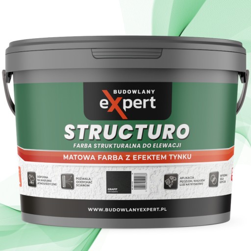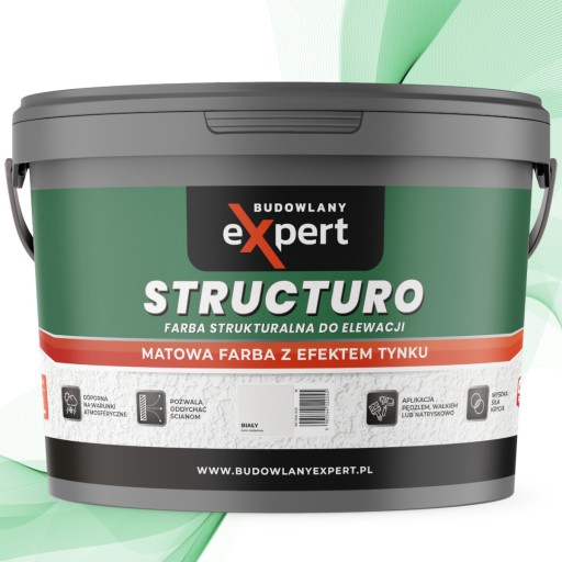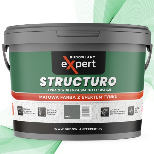 STRUCTURO to ekologiczna, strukturalna farba fasadowa. Dzięki innowacyjnej formule cechuje się odpornością na warunki atmosferyczne czy szorowanie oraz trwałymi kolorami. Tworzy matową, paroprzepuszczalną powłokę. Idealnie nadaje się do stosowania na tynkach cementowych, cementowo-wapiennych i innych podłożach mineralnych.