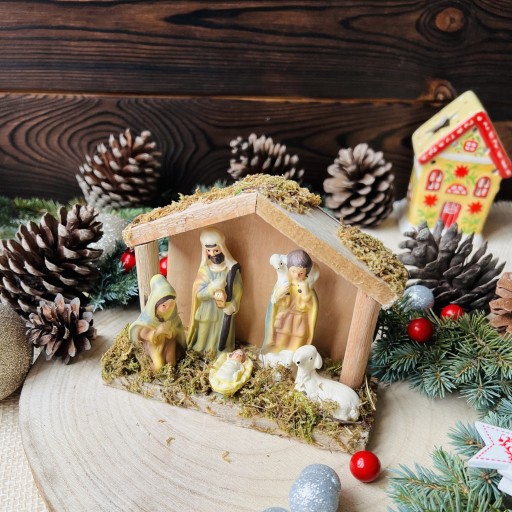 Bożonarodzeniowa Szopka Drewniana Stajenka z Figurkami - Polska Tradycja w Twoim Domu!