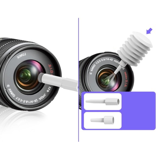 【Miękka szczoteczka i gąbka】 - Mini miękka szczoteczka i pisak do czyszczenia obiektywu z miękkiego tworzywa sztucznego zostały specjalnie zaprojektowane do ekranów, obiektywów i innych delikatnych powierzchni lustrzanek cyfrowych.