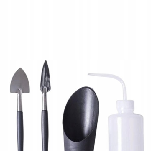 Opakowanie zawiera: butelkę do podlewania 250 ml, łyżeczkę do herbaty, pęsetę łokciową, dmuchawę do kurzu, małe grabie, łopaty, kubek do łopaty