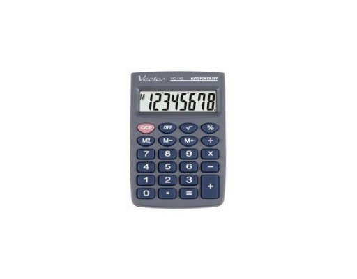 KALKULATOR KIESZONKOWY VECTOR KAV VC-110III, 8-CYFROWY, 58X88MM, SZARY