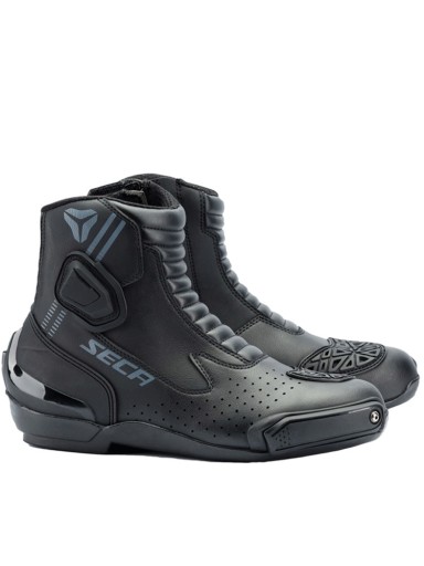 Krótkie Buty Seca Sprint III wykonane są ze skóry bydlęcej najwyższej jakości. Wnętrze wykonane jest z oddychającego materiału co gwarantuje pełną oddychalność. Za bezpieczeństwo odpowiadają twardy ochraniacz pięty wraz z ochraniaczem zewnętrznej i wewnętrznej części kostki. Specjalny panel chroni stopę podczas zmiany biegów. Dodatkowo na zewnętrznej części buta zamontowano slidery chroniące przed złapaniem przyczepności w zakręcie. Odpowiednio ukształtowana podeszwa utrzymuje stopę na podnóżku i zapobiega ześlizgnięciu się stopy. Panele elastyczne zapewniają swobodę ruchów. Anatomicznie ukształtowana wkładka zapewnia komfort podczas użytkowania. Ultra wygodne i bezpieczne zapięcie na rzep i zamek błyskawiczny zabezpiecza but przed zsunięciem się z nogi. Buty posiadają certyfikat CE.