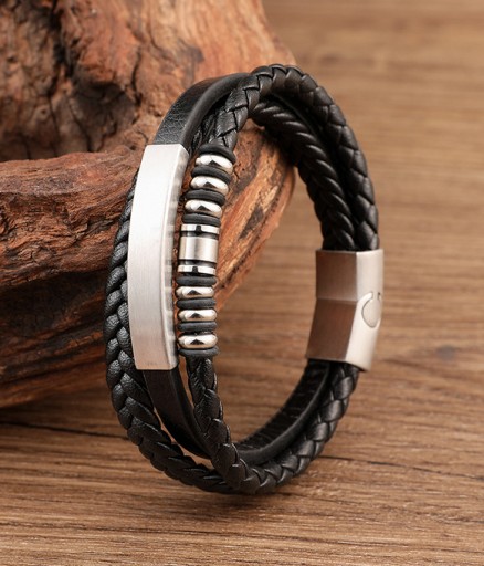 Мужской кожаный браслет KOLUSZKA для ПАПА брата с гравировкой