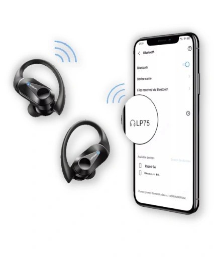 SŁUCHAWKI BEZPRZEWODOWE LENOVO LP75 BLUETOOTH DOUSZNE CZARNE WODOODPORNE
