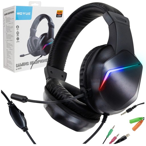 ✅Zgodność z różnymi urządzeniami: Słuchawki posiadają dwie osobne wtyczki Jack 3,5 mm dla słuchawek i mikrofonu oraz złącze USB do zasilania podświetlenia, co sprawia, że są one kompatybilne z różnymi urządzeniami.