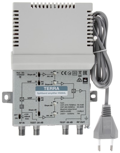 - Regulacja wzmocnienia: 0dB... 20dB@ VHF ,0dB... 14dB@ UHF