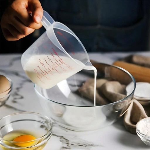 Miarka kuchenna posiada skalę z wyraźnie zaznaczoną ilością produktów płynnych lub sypkich. Z nią usprawnisz pieczenie i gotowanie.