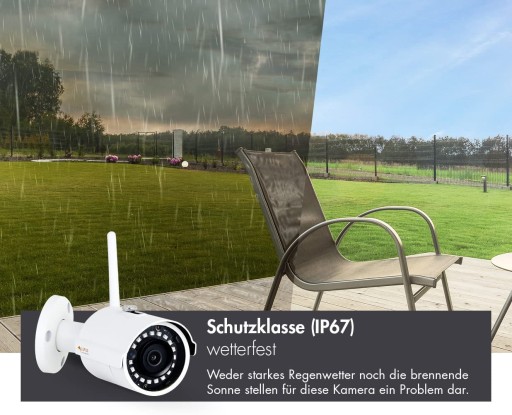 - Kamera ma kąt widzenia 100 °, rozdzielczość 3 MP (2048 × 1536 pikseli), 30-metrowy noktowizor, WiFi i kabel oraz jest odporna na warunki atmosferyczne.