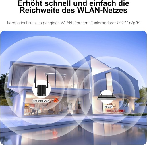 - 【Super zasięg sygnału】Wzmacniacz sieci WLAN szybko i łatwo zwiększa zasięg każdej sieci WLAN. W każdej chwili można rozszerzyć zasięg Wi-Fi i usunąć martwe kąty. Oferuj szybkie WiFi do 300 Mbit/s dla obszarów bez sygnału!