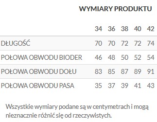 Modelka ma 173 cm wzrostu i prezentuje rozmiar 34.