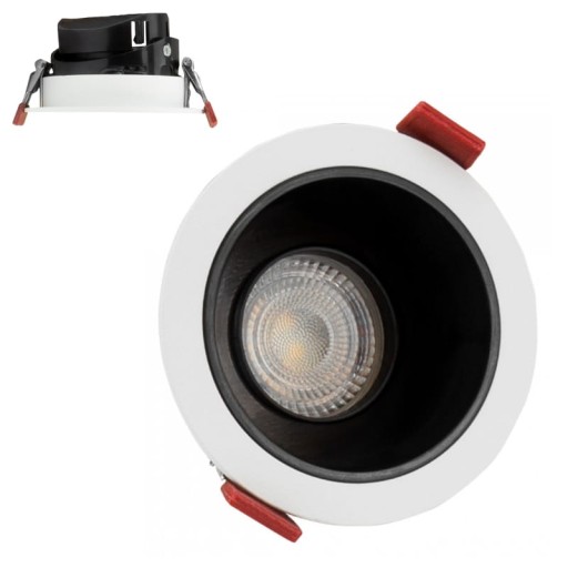 Oprawa wpuszczana MR16 OKRĄGŁA regulowana aluminium BIAŁA z czarnym wnętrzem FIALE COMFORT oczko wpuszczone głębiej, powłoka przeciwodblaskowa IP20 SPECTRUM
