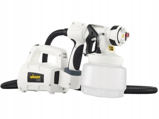 - nazwa przedmiotu: WAGNER System natryskowy W 450 do farby dyspersja i lateksowe w pomieszczeniach, 15 m²-10 min, pojemnik 1300 ml, 460 W, wąż 1,8 m