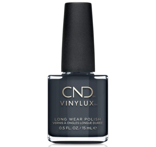 Lakier CND Vinylux Asphalt w grafitowym kolorze. Znakomity odcień dla Pań, które lubią grafitowo-szare stylizacje.