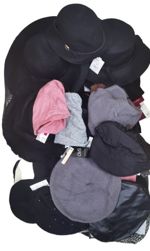 - karton zawiera 100 sztuk, w zestawie czapki, berety, kapelusze