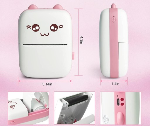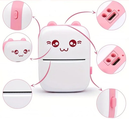 DRUKUŚ MINI DRUKARKA TERMICZNA KOTEK + 4 ROLKI