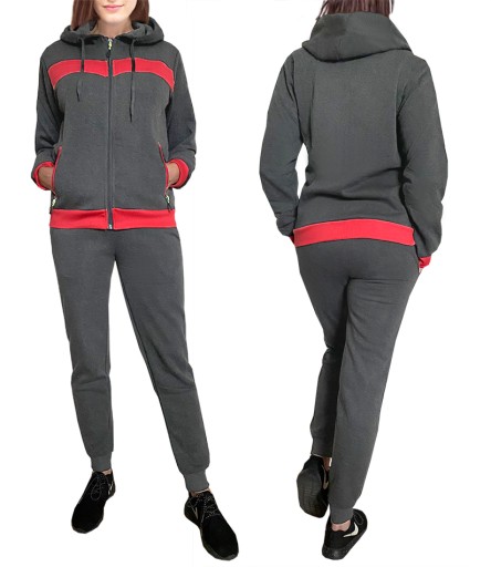 Теплый спортивный костюм ЖЕНСКИЙ СПОРТИВНЫЕ КОСТЮМЫ с КАПЮШОНОМ 9124 КОМПЛЕКТ серый М