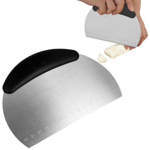 Szpatułka cukiernicza i rozdrabniacz jednocześnie. Niezwykle przydatna podczas rozprowadzania masy lub kremu do ciasta czy tortu. Dzięki ostremu zakończeniu, sprawdzi się również do siekania i krojenia. Dodatkowo wyposażona w miarkę, która pozwoli nam na odpowiednie odmierzenie równych kawałków. Wyprodukowano zgodnie z europejskimi standardami.