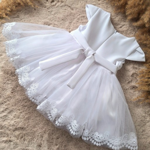 Przedstawiamy Państwu piękną sukienkę dla dziewczynki, idealną na ważne okazje takie jak chrzciny czy wesele. Ta biała sukienka zachwyci swoim eleganckim designem i starannym wykonaniem oraz sprawi, że Wasza córeczka będzie wyglądać jak królewna.