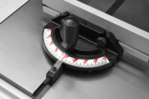 - tarcza piły formatowej osadzona na wrzecionie, które posiada możliwość wychylnego ustawiania w stosunku do stołu roboczego