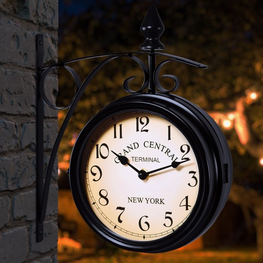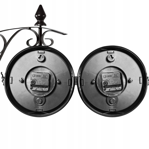 Przymocowany za pomocą uchwytu z kutego żelaza zegar doskonale wpasuje się w każde wnętrze i jest łatwy do odczytania z obu stron dzięki 2 dużym tarczom z cyframi arabskimi.