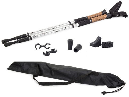 KIJKI NORDIC WALKING KIJE DO CHODZENIA 2szt ZESTAW Z KORKOWĄ RĄCZKĄ KOLOR SREBRNY