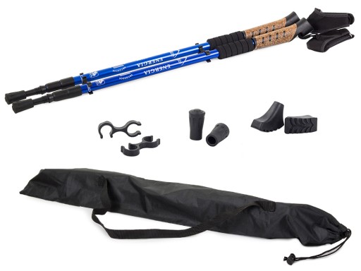 KIJKI NORDIC WALKING KIJE DO CHODZENIA 2szt ZESTAW Z KORKOWĄ RĄCZKĄ KOLOR NIEBIESKI