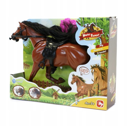 Koń z długą, piękną grzywą - marzenie każdej dziewczynki. Nasz konik wyposażony jest w ściąganą uzdę oraz siodło.