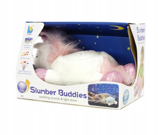 Miękki, pluszowy jednorożec będzie idealnym towarzyszem podczas snu dla dziecka w każdym wieku. Przytulanka zapewni maluchowi poczucie bezpieczeństwa i komfortu. Uspokajające melodie i dźwięki ukołyszą dziecko do snu, a świecące gwiazdki i kropeczki stworzą na suficie i ścianach gwieździste niebo. Kolorowe światła rozświetlające pokój pomogą dziecku wyciszyć się i zrelaksować przed snem.