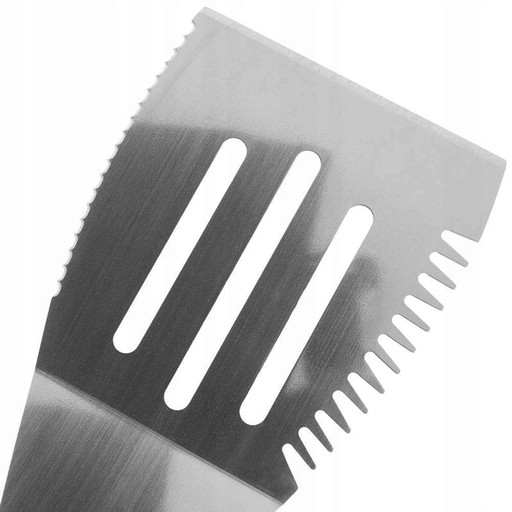 Łopatka do grilla wyposażona została w specjalne wyżłobienia, które pozwalają na szybkie odsączenie wytopionego tłuszczu.