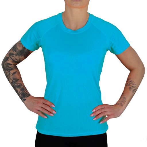 - Koszulka techniczna z krótkim reglanowym rękawem i okrągłym kołnierzykiem.