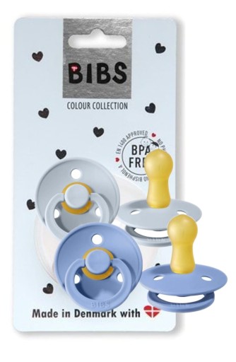 BIBS COLOR, 2 КОМПЛЕКТА, НЕБЕСНО-ГОЛУБОЙ И BABY BLUE M Резиновая пустышка Heve