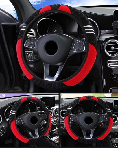 ЧЕХОЛ НА РУЛЬ КОША МЕХ УНИВЕРСАЛЬНЫЙ ЧЕРНЫЙ КРАСНЫЙ