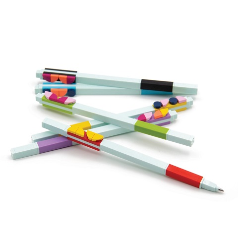 Zaprojektowane w duchu skandynawskiego designu, długopisy żelowe LEGO wyróżniają się prostotą i funkcjonalnością. W zestawie znajduje się aż 25 drobnych klocków do spersonalizowania długopisów według własnej fantazji. Długopisy zawierają elementy z klocków, dzięki którym można je ze sobą łączyć i tworzyć wielokolorowe podkreślenia oraz z łatwością przymocować do notatnika, piórnika LEGO lub innych przyborów szkolnych z serii. W zestawie 6 przydatnych kolorów: