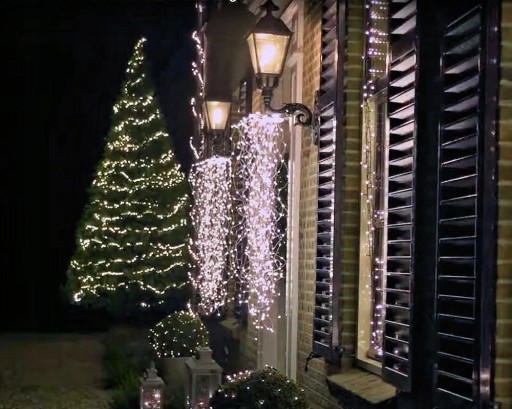Dzięki tej kurtynie świetlnej, dachy, elewacje, balkony, tarasy i inne elementy można zaaranżować w nowoczesny sposób. Zasłona lodowego deszczu jest cudownie elastycznym oświetleniem bożonarodzeniowym.