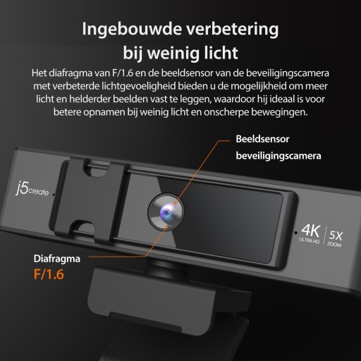 j5create Kamera internetowa USB 4K Ultra HD z cyfrowym powiększeniem 5x i p