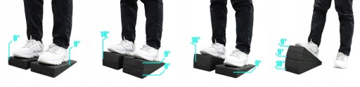 - Łatwy w użyciu, nie wymaga montażu. Możesz połączyć je ze sobą, używane jednocześnie z obiema nogami pod kątem 9 ° i 18 °, a kąt 27 ° i 36 ° można osiągnąć przy treningu jednej nogi.