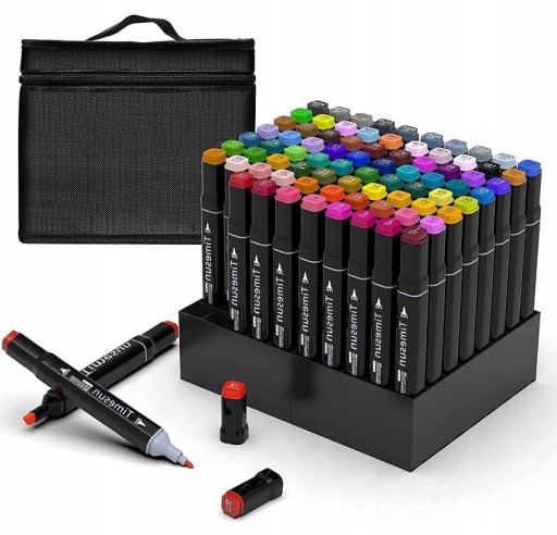 MARKERY ALKOHOLOWE ZESTAW 80SZT i TORBA, DWUSTRONNE FLAMASTRY PISAKI MAZAKI
