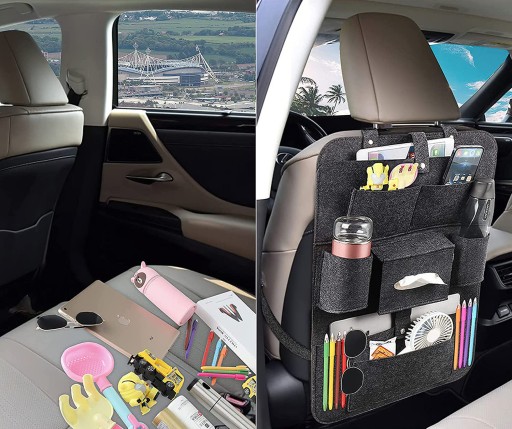 Filcowy organizer samochodowy to nie tylko idealny sposób na uporządkowanie najpotrzebniejszych w aucie rzeczy i trzymanie ich pod ręką, ale również na ochronę tapicerki fotela.