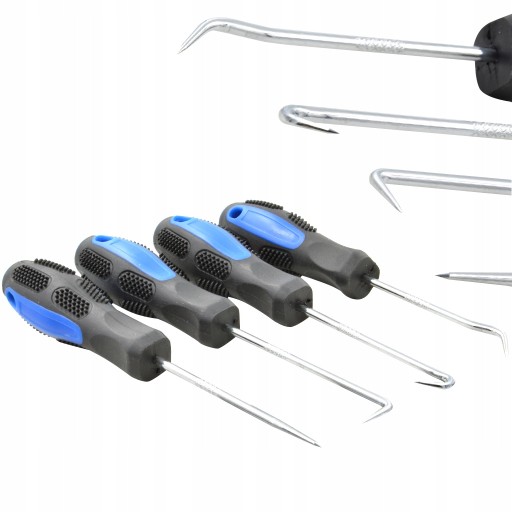 4-elementowy zestaw haków. Idealny do usuwania uszczelek olejowych, o-ringów, zawleczek, itp.