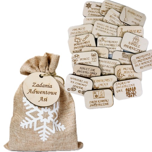 ИНДИВИДУАЛЬНЫЙ НАБОР АДВЕНТ-ЗАДАНИЙ ДЕРЕВЯННЫЙ В ДЖУТОВОМ СУМОЧКЕ ИМЕННО