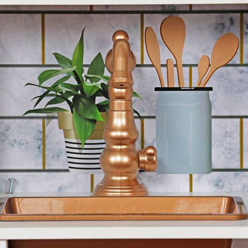Obok palników znajduje się wyjmowany zlew z kranem i 2 kurkami, do wody ciepłej i zimnej. Wyjmowany zlew można napełnić wodą, tak by dziecko mogło pozmywać naczynia po posiłku.