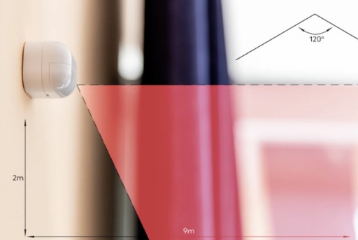 Shelly BLU Motion potrafi wychwycić ruch z odległości do 9 metrów i pokryć go pod kątem do 120 stopni .
