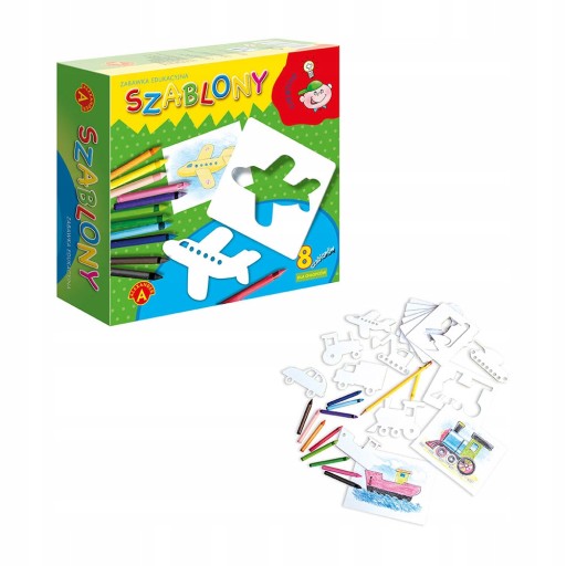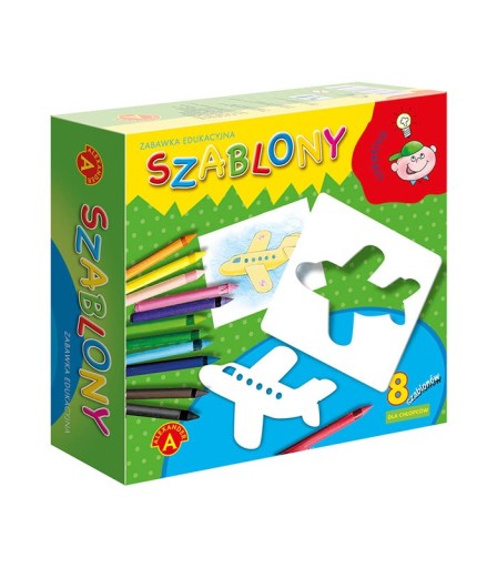 Zabawka składająca się z 8 szablonów, które przedstawiają 8 różnych postaci lub rzeczy. Dzięki nim, każde dziecko może w łatwy sposób odwzorować wybrany obrazek, pomalować i ozdobić dodatkowymi elementami.