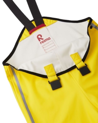 ➤Wygodne, elastyczne szelki utrzymują spodnie na miejscu podczas aktywnych zabaw, a paski zapobiegną podsuwaniu się nogawek spodni po cholewach kaloszy.